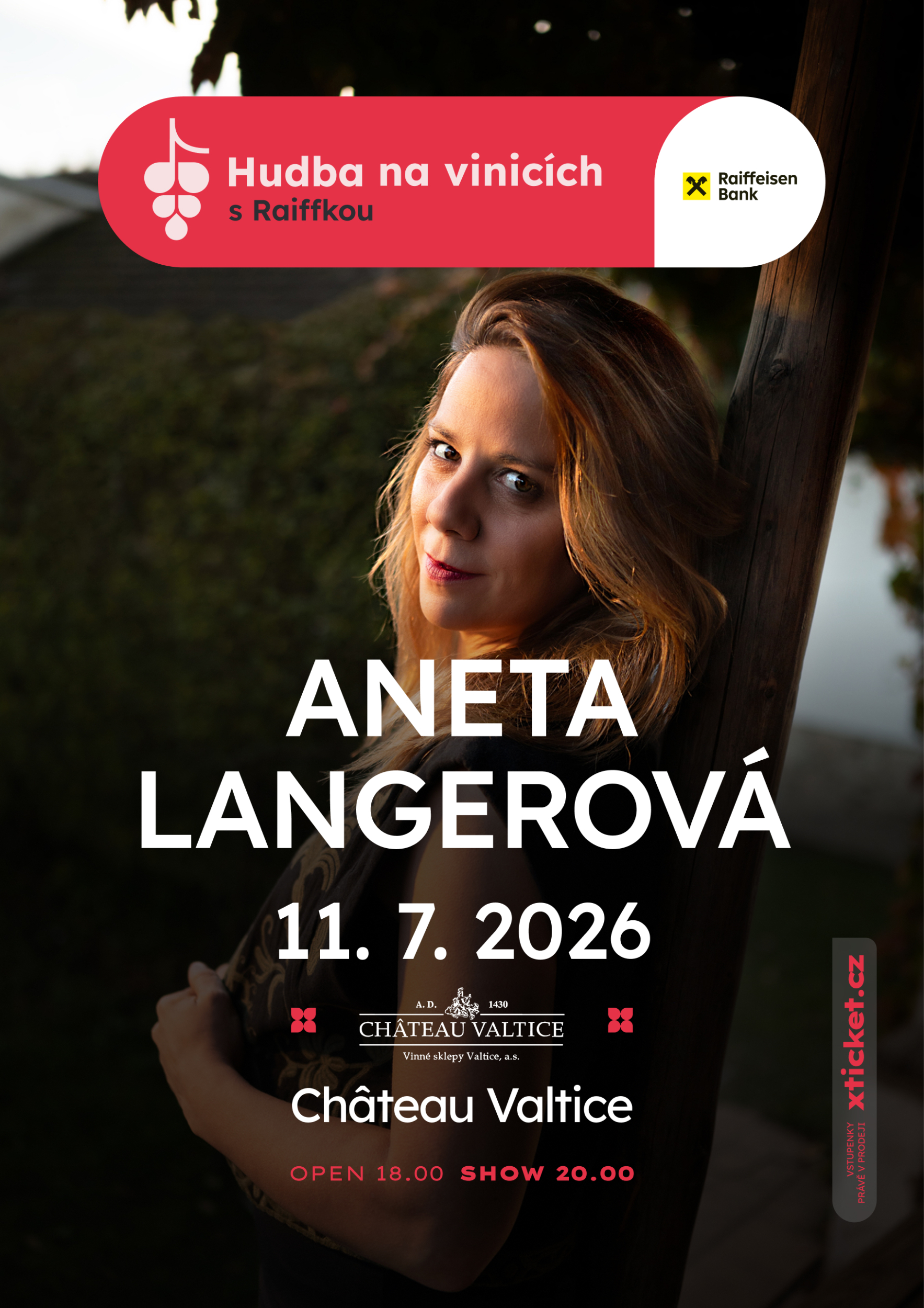 Koncert Anety Langerové s kapelou a smyčcovým triem proběhne v prostorách vinařství Château Valtice v rámci festivalu Hudba na vinicích.